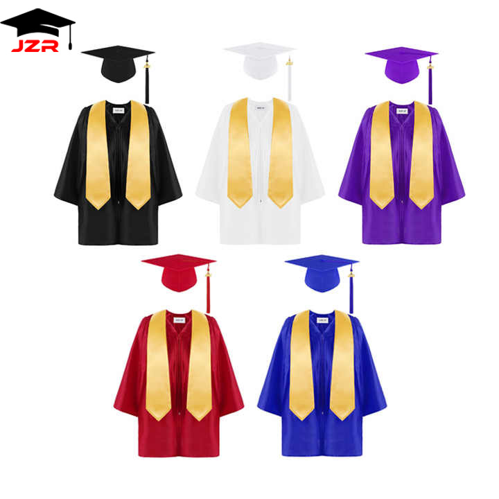 2025 блестящие и матовые Детские платья и кепки детская форма для выпускного платья для дошкольного возраста самые дешевые детские выпускные кепки и платья на заказ
